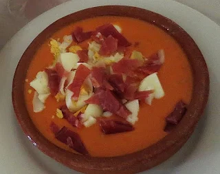 La porra antequerana es una crema fría que recuerda al salmorejo cordobés pero se diferencia de este por ser más denso y servirse con atún y pimiento verde. La densidad es un tema importante porque se busca que al clavar la cuchara esta se quede clavada en la crema.